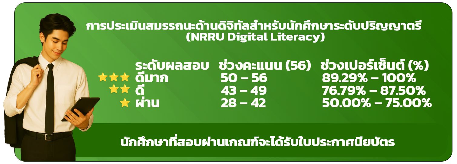 การประเมินสมรรถนะด้านดิจิทัลสำหรับนักศึกษาระดับปริญญาตรี (NRRU Digital Literacy)